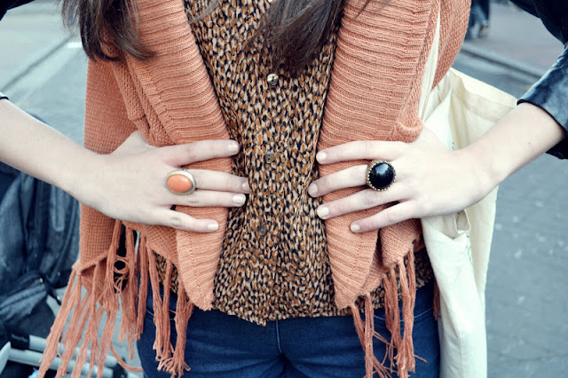 Hasta que alguien se atrevio a poner un sueter encima de una chaqueta de cuero! hermosa combinacionde colores y texturas!