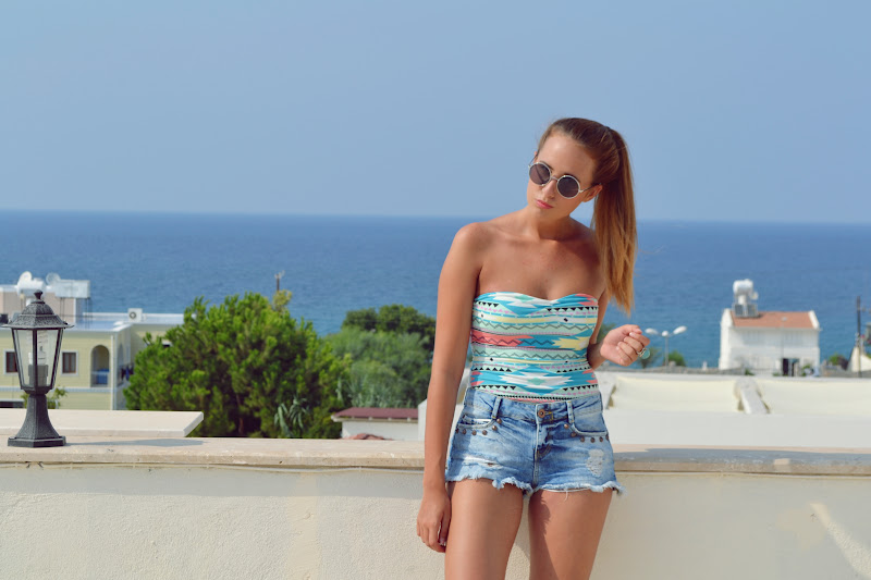 Yes! I spent my holiday on Cyprus! I also had been to Turkey and some of the cities here in Germany! I can say that this summer was one of the best times in my life. Check!Some of my must haves in summer 2012 : lennon sunglasses, Aztec pattern and shorts!My todays outfit includes every item I loved this year. All of the pictures I took during my holiday actually came up in just two days.It was hot and all we wanted to do was swiming and laying on the beach or pool the whole day.We had been that lazy that we decided to shoot almost all of the outfits in only one day!