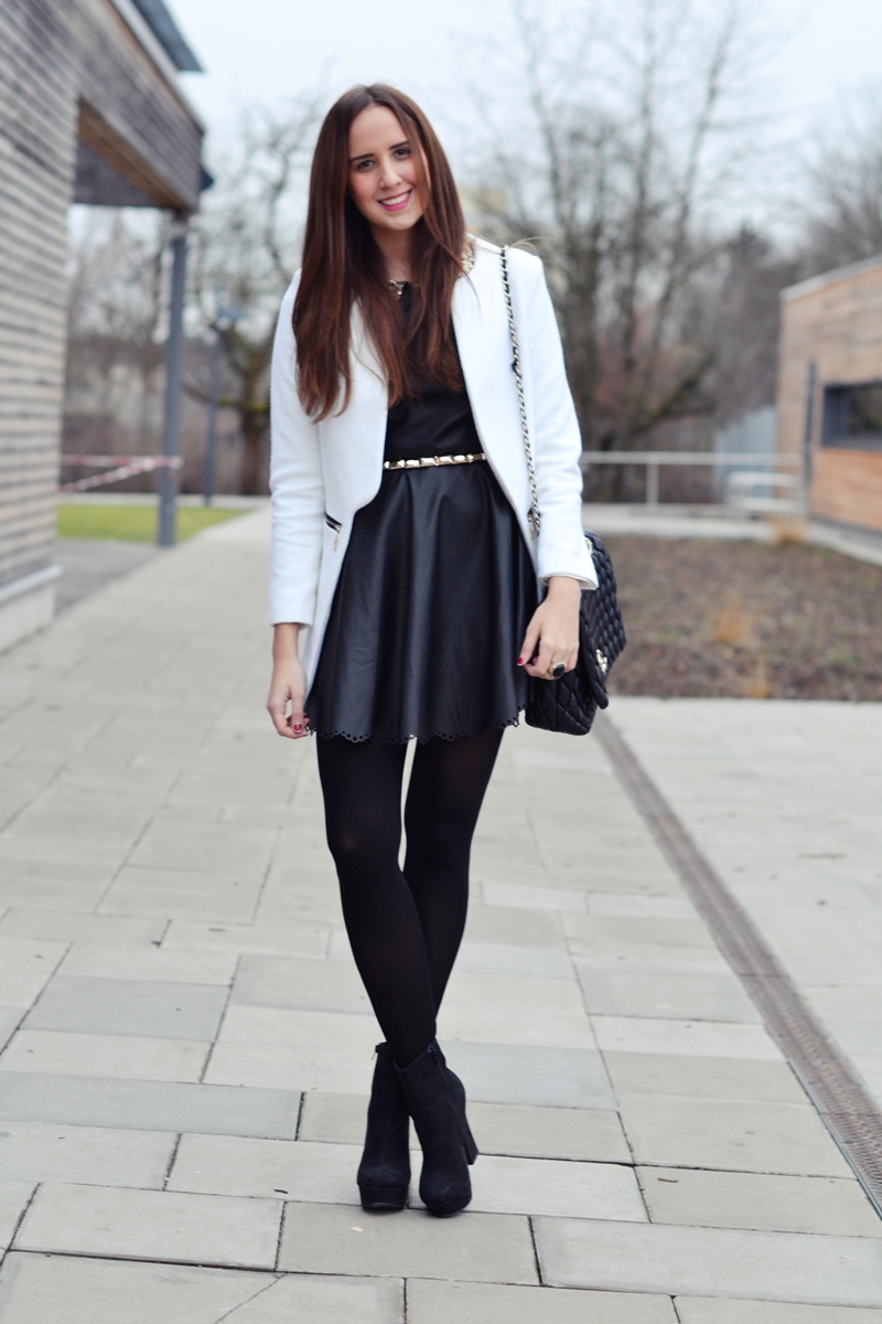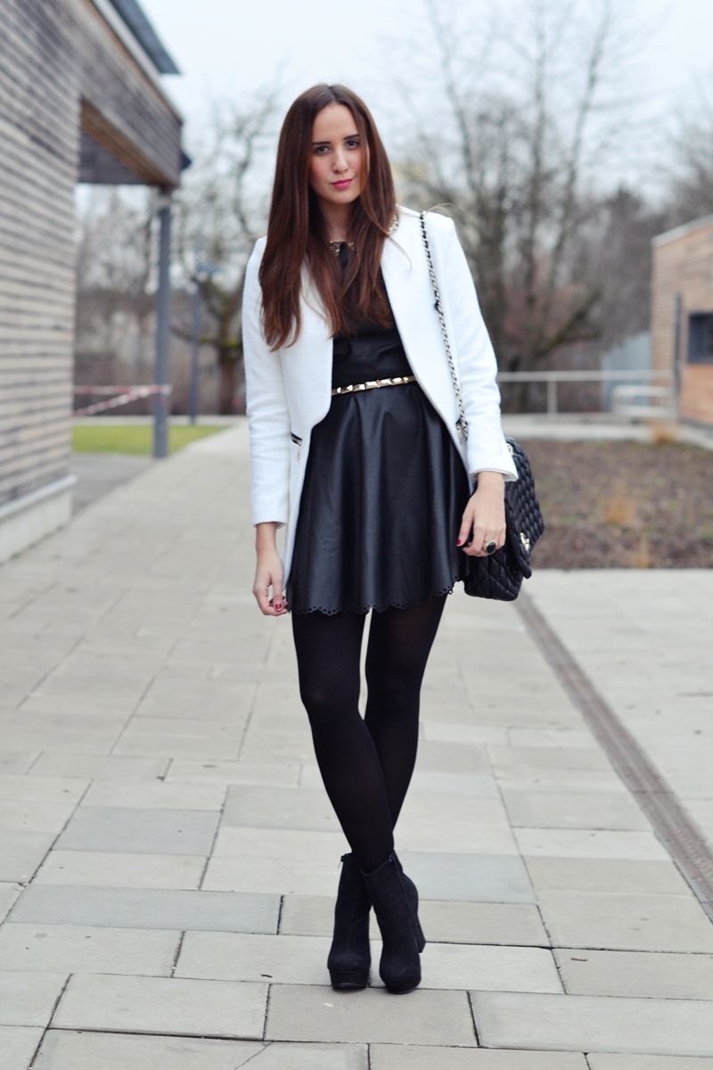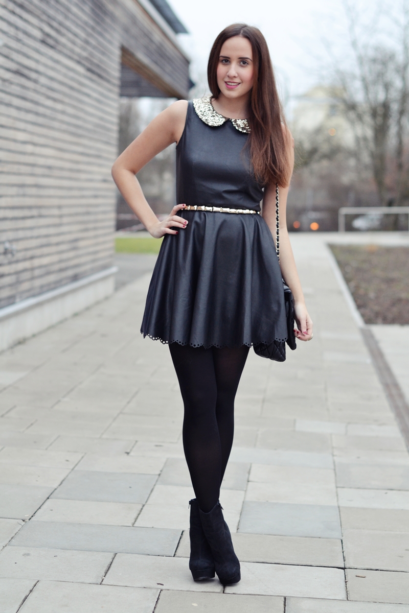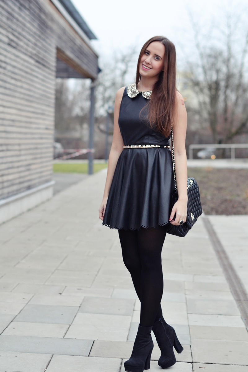 ENG Hi! I promised to show you my outfit from the Stylight Launch in detail, so here it is! I fell in love with my new dress. It was like love at first sight and from the moment I saw it, I knew it would be the perfect dress for winter. Now that I finally have it, I can say that it is my favorite piece at the moment. This little leather babydoll with glitter collar and the cutest detail ever on its lower part is from DAHLIA. You should check this shop right away, because they have amazing clothes. I would love to have everything and I’m surprised because I never liked every single piece a shop sells! To the rest of my outfit : I decided to wear my new shoes with a thick heel, my white coat from VJ Style and my all time favorite bag, that I’m sure everyone knows already. I hope you like it!