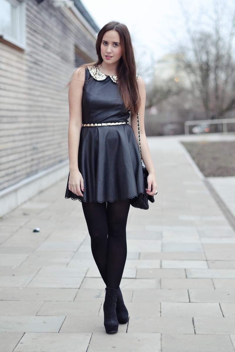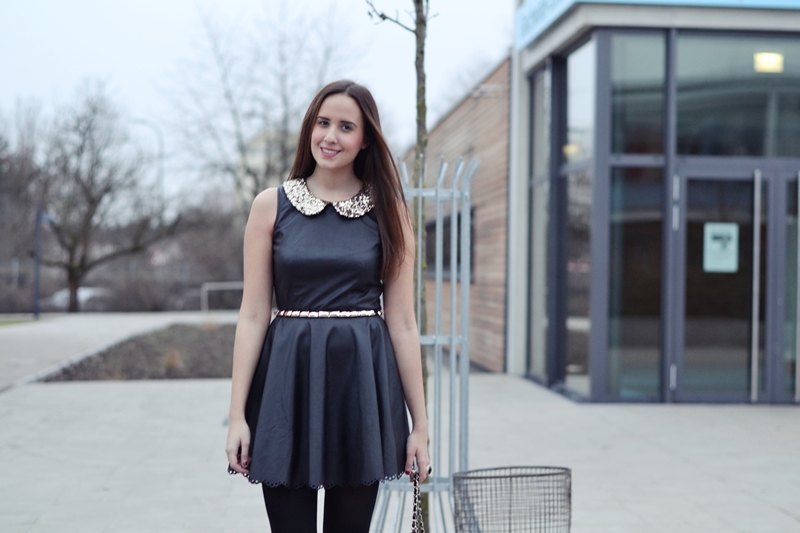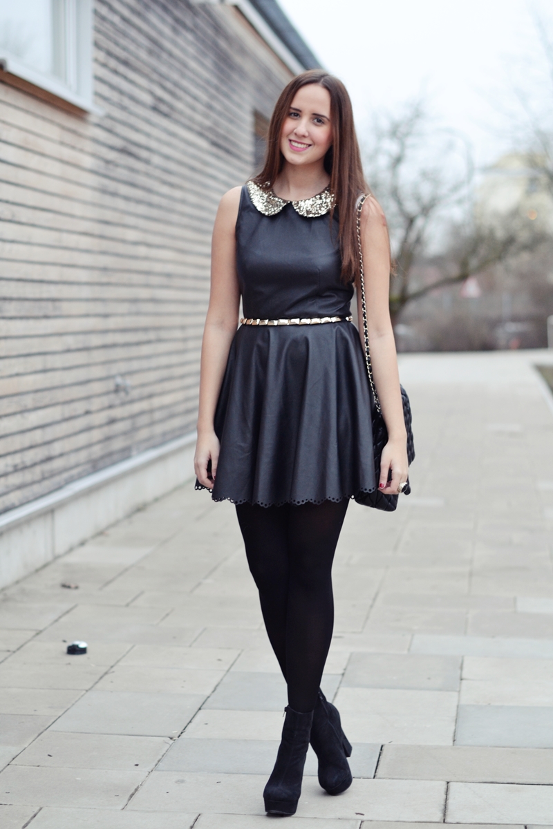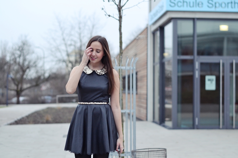 ENG Hi! I promised to show you my outfit from the Stylight Launch in detail, so here it is! I fell in love with my new dress. It was like love at first sight and from the moment I saw it, I knew it would be the perfect dress for winter. Now that I finally have it, I can say that it is my favorite piece at the moment. This little leather babydoll with glitter collar and the cutest detail ever on its lower part is from DAHLIA. You should check this shop right away, because they have amazing clothes. I would love to have everything and I’m surprised because I never liked every single piece a shop sells! To the rest of my outfit : I decided to wear my new shoes with a thick heel, my white coat from VJ Style and my all time favorite bag, that I’m sure everyone knows already. I hope you like it!