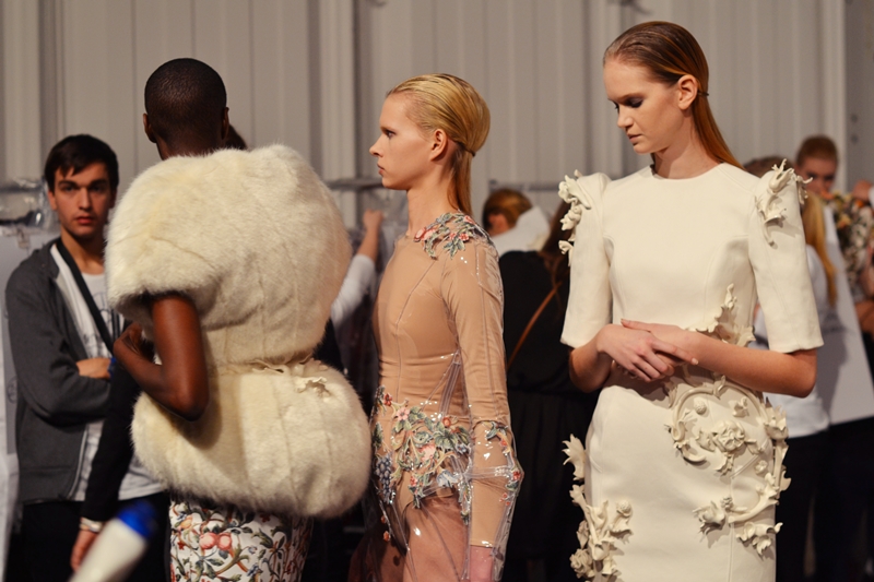 DE “Das ist nicht meine Schuhgröße”, “Meine Füße tun weh”, “Habt ihr Innensohlen?”- wir sind nicht in New York, Prinzessin! Ich habe immer gedacht, dass Models, die sich über die Schuhe beschweren nur ein Stereotyp, ein Klischee, ein Mythos wären. Naja, abgesehen von der fabelhaften Kollektion und wunderschöner Modenschau ist es das Erste an was ich mich erinnern kann, wenn ich über die Leandro Cano Show hinter den Kulissen denke. Leandro Cano ist diesjähriger Gewinnern von dem “Designer for Tomorrow by Peek & Cloppenburg Düsseldorf” 2012 Wettbewerb. Infolge von meinem Praktikum hatte ich die Möglichkeit den jungen und dennoch so inspirierenden Designer kennenzulernen und sowohl bei der Anprobe als auch bei der Show auf der BFW zu helfen.
